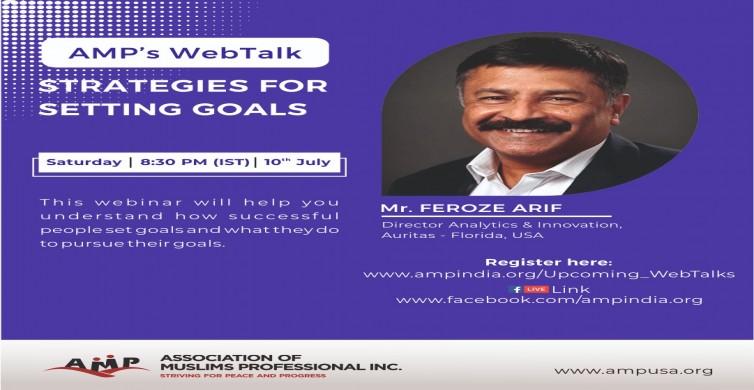 Association of Muslim Professionals (AMP) invites you to a webinar on Strategies for Setting Goals. Success is mostly about setting and achieving goals. However, setting a goal is not suffic ...