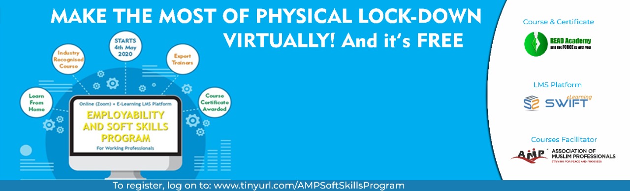 Association of Muslim Professionals USA (AMP Inc., USA) has taken this initiative in collaboration with “READ Academy & Swift E-learning Services” to help & support its members, volunteers and anyone who is looking to improve their skills via this 15 Days Soft Skills Training Program. This initiative of AMP USA is an attempt to help you stay ahead of the curve and prepare for the upcoming life post Covid19 pandemic.